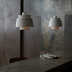 To Jorn Utzon, his father's naval engineering drawings became a lifelong fascination with ships and boats, along with light. More than a decade before Jorn Utzon created his masterpiece, the Sydney Opera House, he put his child- hood fascination into this pendant, combining successfully the smoothness of the lines of a ship with the source of light for the first time. The choice of white or polished chrome finish reminds one of the waves and the northern light.