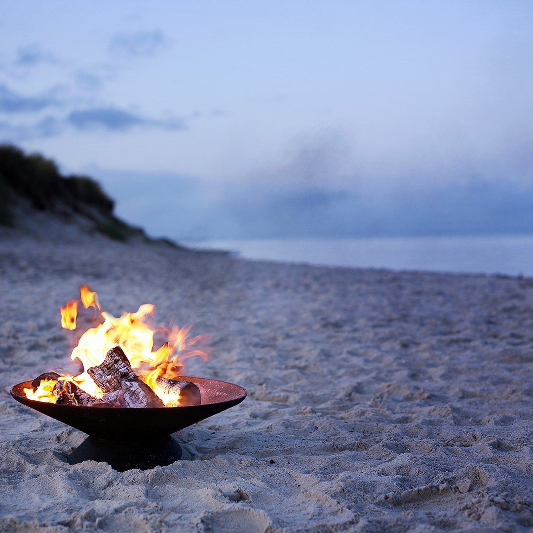 Helios is both a fireplace and a grill, constructed to provide optimal air flow for the firewood or charcoals. The intuitive design with side handles makes it easy to move around when cold. Designed by Skagerak Design.