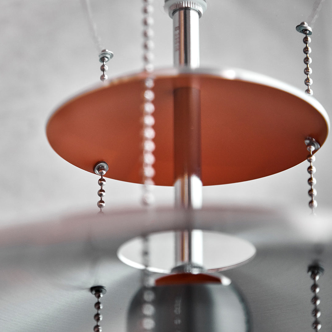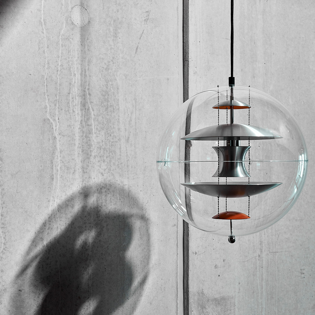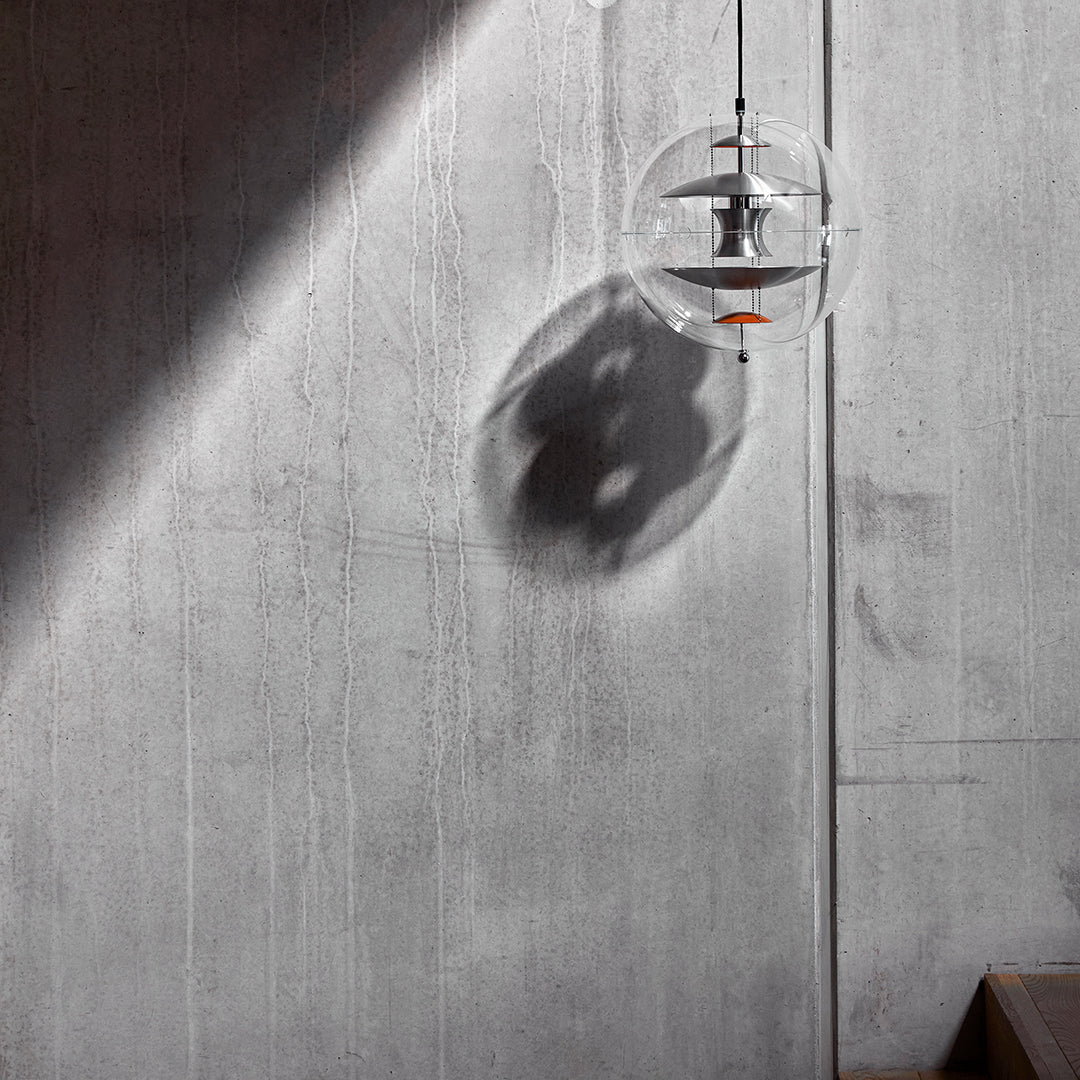 The new VP Globe introduces a brand new expression to the VP Globe family, featuring aluminum reflectors in a cool matte brushed finish with warm orange accents, a classic color in the world of Verner Panton.