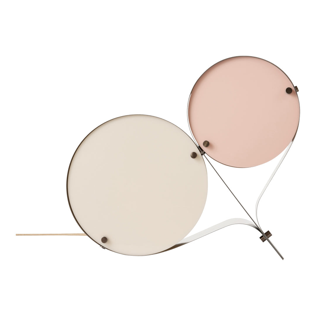 Coppia marks Gubi's first use of plexiglass—a material that has become Fonnesberg Schmidt's signature. Lighter than glass and easily shaped, it brings color and high-shine finish that contrasts beautifully with the hard, matte surface of brushed bronze steel. The result is simple and minimalist while also being playful and decorative—a piece that influences ambiance through color, shape, and the meeting of contrasting materials.