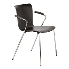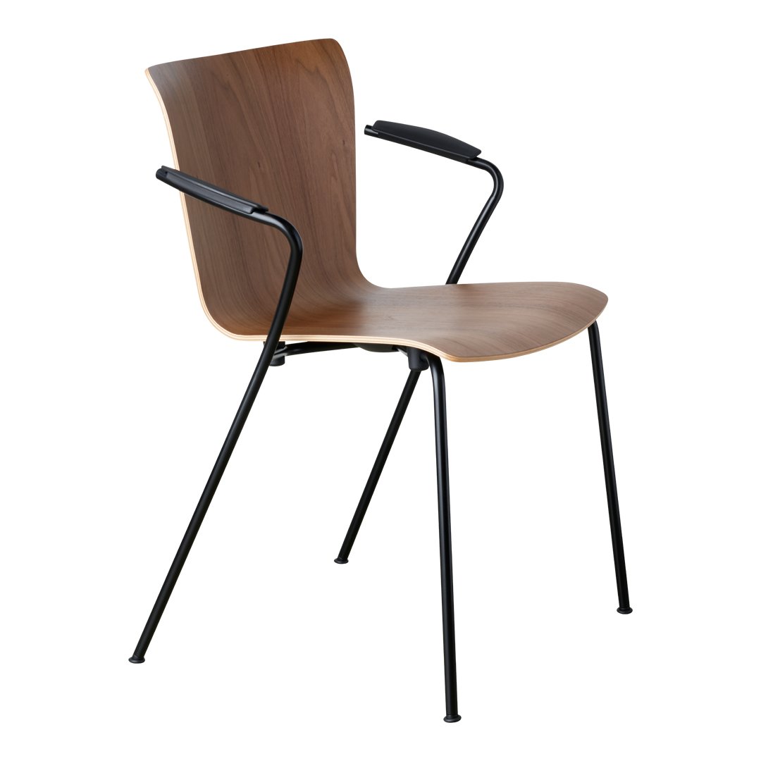 The Vico Duo chair comes in two different finishes: Natural veneer and black colored ash. All chairs are made of pressure molded sliced veneer. The shell is also available in front or fully upholstered versions in a wide range of textiles and leather types. Besides a base with four legs, it also comes with a sledge base, as a counter stool or as a bar stool.