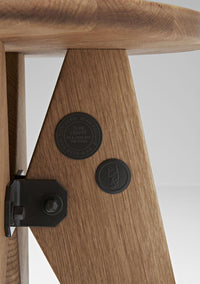 Tabouret Solvay is a simple, robust stool made of solid wood that reveals the designer’s signature at first glance: its clear structural principles can be found throughout the work of Jean Prouvé. Thanks to the flat, even surface of the seat, Tabouret Solvay can also be used as a small side table.