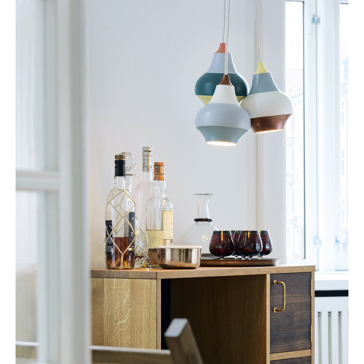 Made of aluminum, CIRQUE is a robust lamp designed for use in kitchens, children's bedrooms, bars and restaurants. Due to its direct downward light distribution, it is particularly suited for suspending low above tables or as low-hanging groups in a corner. CIRQUE is easy to clean, decorative when not lit, and provides extremely atmospheric lighting when lit.