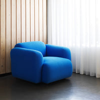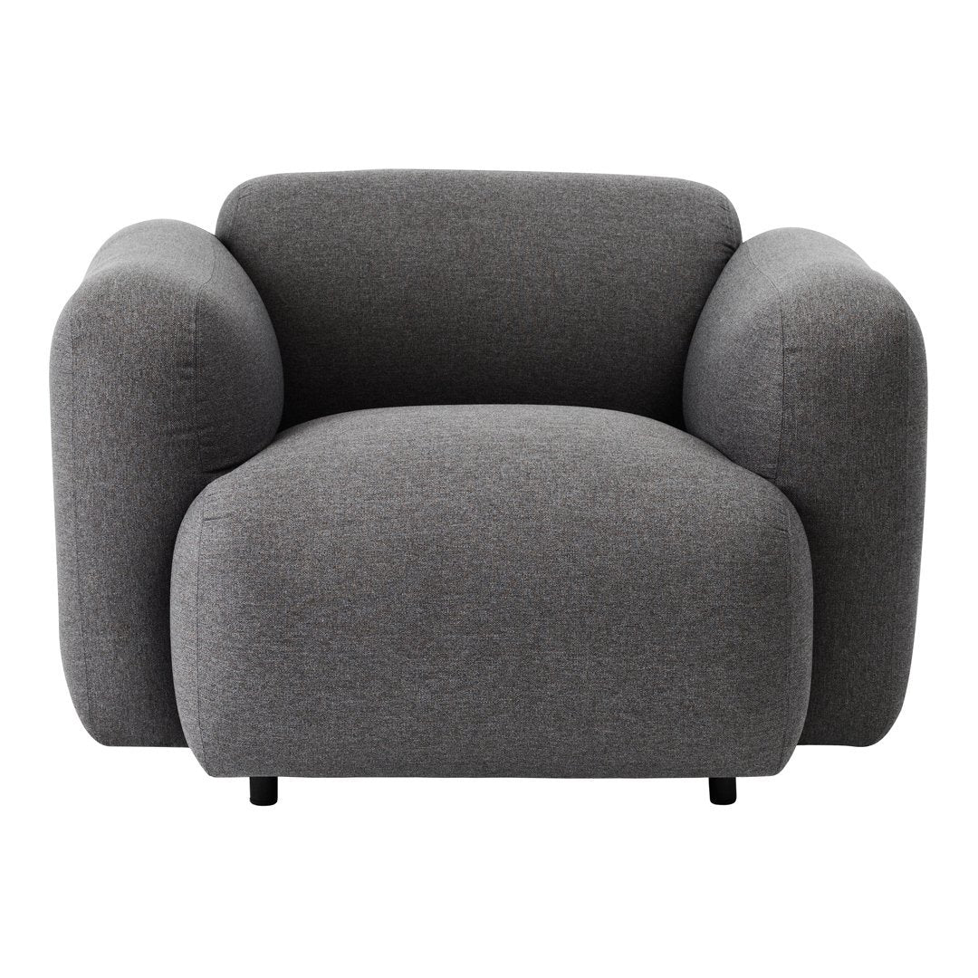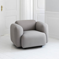 Swell is available as a two and three seat sofa as well as an armchair. The range of 21 different colors makes it easy to find a match for any decor by encompassing everything from neutral grey and brownish tones to deep and tranquil shades of blue and purple as well as energetic and bright yellow, green and red and a classic black.