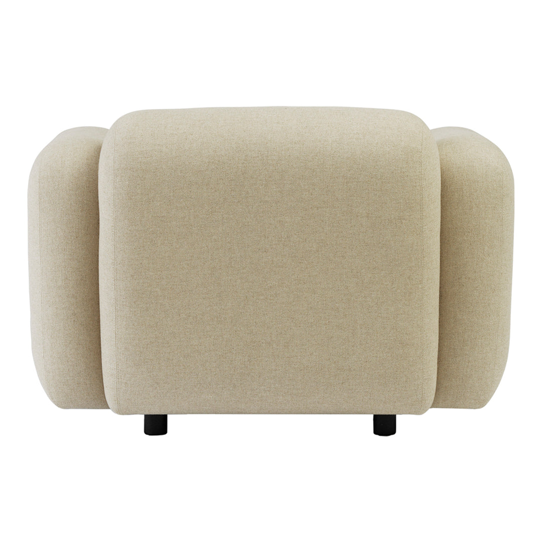 The name Swell is a reference to rising bread. Swell has a full shape, consisting of a robust padded back and seat and two curvy armrests. The stitching on the back and the seats divides the sofas into sections and completes the feel.