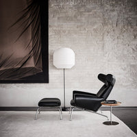 The beautiful rounded shapes and minimalistic frame, which characterise the two lounge chairs, are reflected in the EJ 100-F footstool as the perfect ending for the classic Queen and Ox chair.
