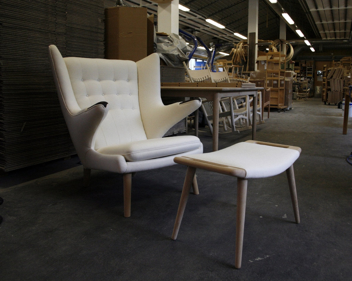 Wegner designed this stool as an accessory to the pp19 Teddy Bear Chair. But despite this specific match, it naturally accompanies most other easy chairs in PP Møbler's product line. Wegner clearly demonstrated this himself at several occasions presenting the stool along with many other easy chairs. In this way, the stool exemplifies a similar kind of universal design as the pp35 Tray Table.