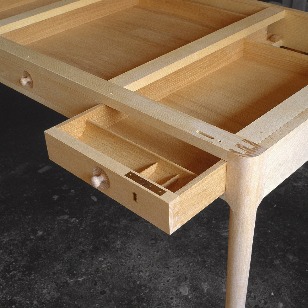 As a counter experiment, this desk pays homage to pure, traditional and exquisite woodwork. Although the thorough and dedicated attention of a skilled cabinetmaker is required in executing the work on this desk, the job can be done with quite simple and trivial tools. This is not a search for something new or extraordinary. This is a result of the simple and strong will to create something genuine and honest.