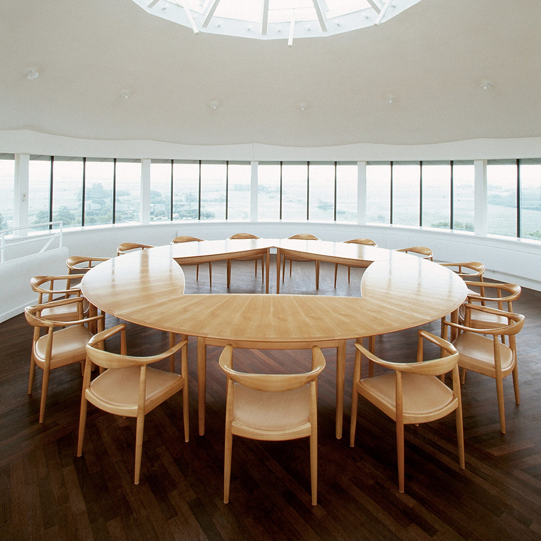 'The Round One' as Wegner referred to it with his usual provincial modesty, is perhaps the most famous Danish piece of furniture of them all - which says a bit. Already a year after the production of this chair startet at Johannes Hansen Møbelsnedkeri A/S, it was noticed by the American magazine for design and architecture, 'Interiors'. This turned out to be the beginning of Danish design's great international breakthrough. Yet, Wegner remained rather unimpressed with his own creation 'They could have made this hundreds of years ago - nothing new here' he uttered at several occasions, referring to the basically very traditional construction.
