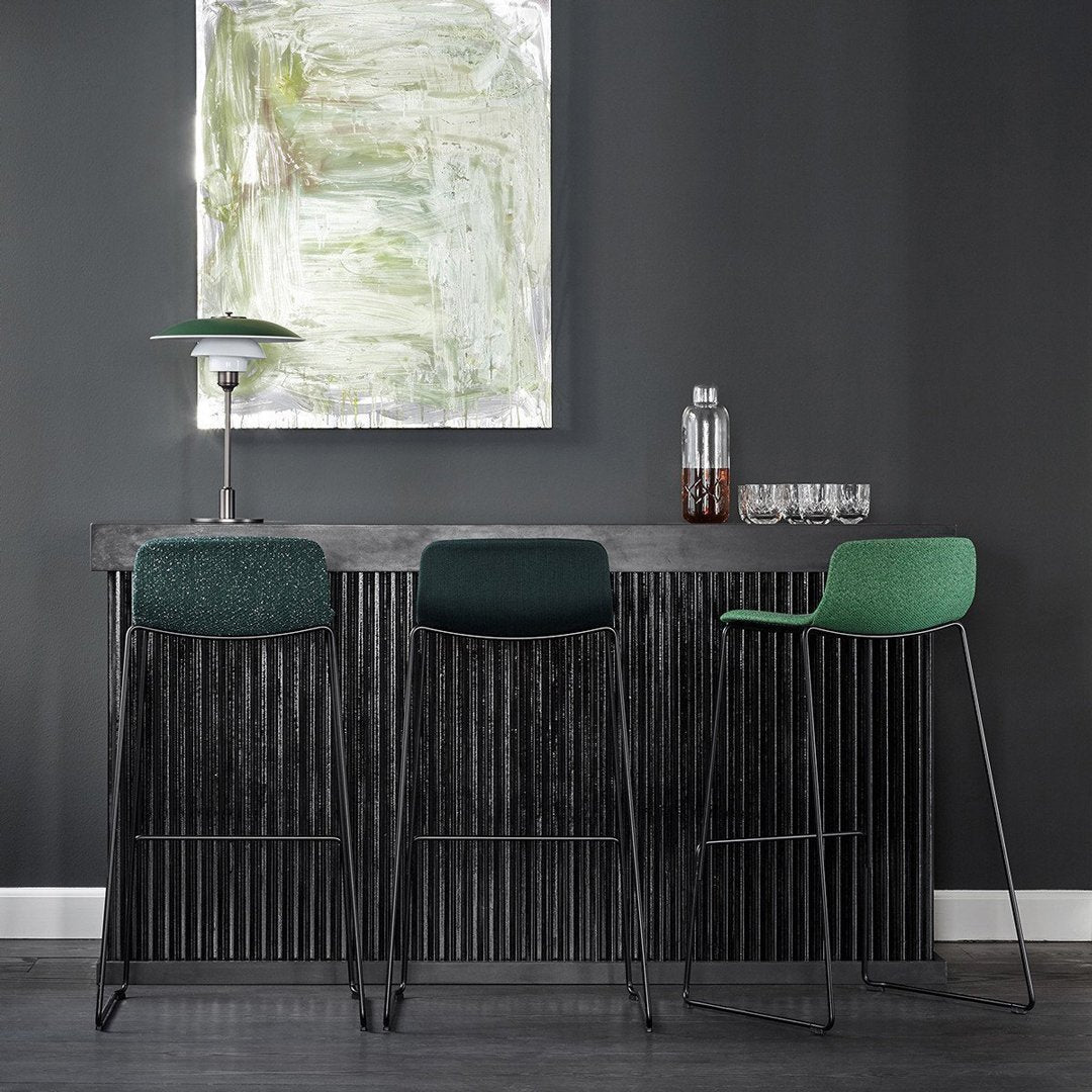 The Pato Stool seat is made in the same high-rate polypropylene as the original Pato Series. The silky touch and resilient surface is suitable for outdoor as well as indoor use. Pato Stool is also available with upholstery that further enhances the comfort of the chair and opens for various visual expressions. The sledge version of the stool is stackable and comes in both bar and kitchen counter height.