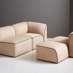 The Flora modular sofa is inspired by the natural shapes of vegetation and how petals of flowers grow in organic ways. With this concept in mind, the Spanish design studio Yonoh wanted to develop a modular sofa series with the outlines of a petal flower. Designed by compose perfectly while staying organic and soft shaped. The result is four different modules with the distinctive black piping and an armrest cushion, which allows for an unlimited number of combinations. Fire retardant foam is available upon request. Please contact us for further information.