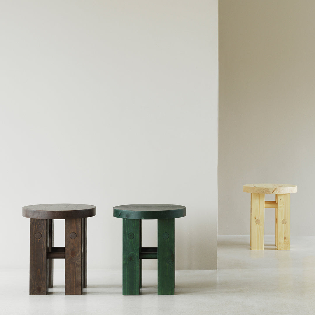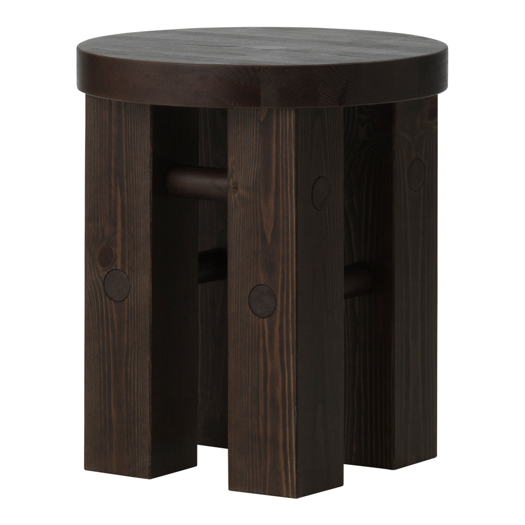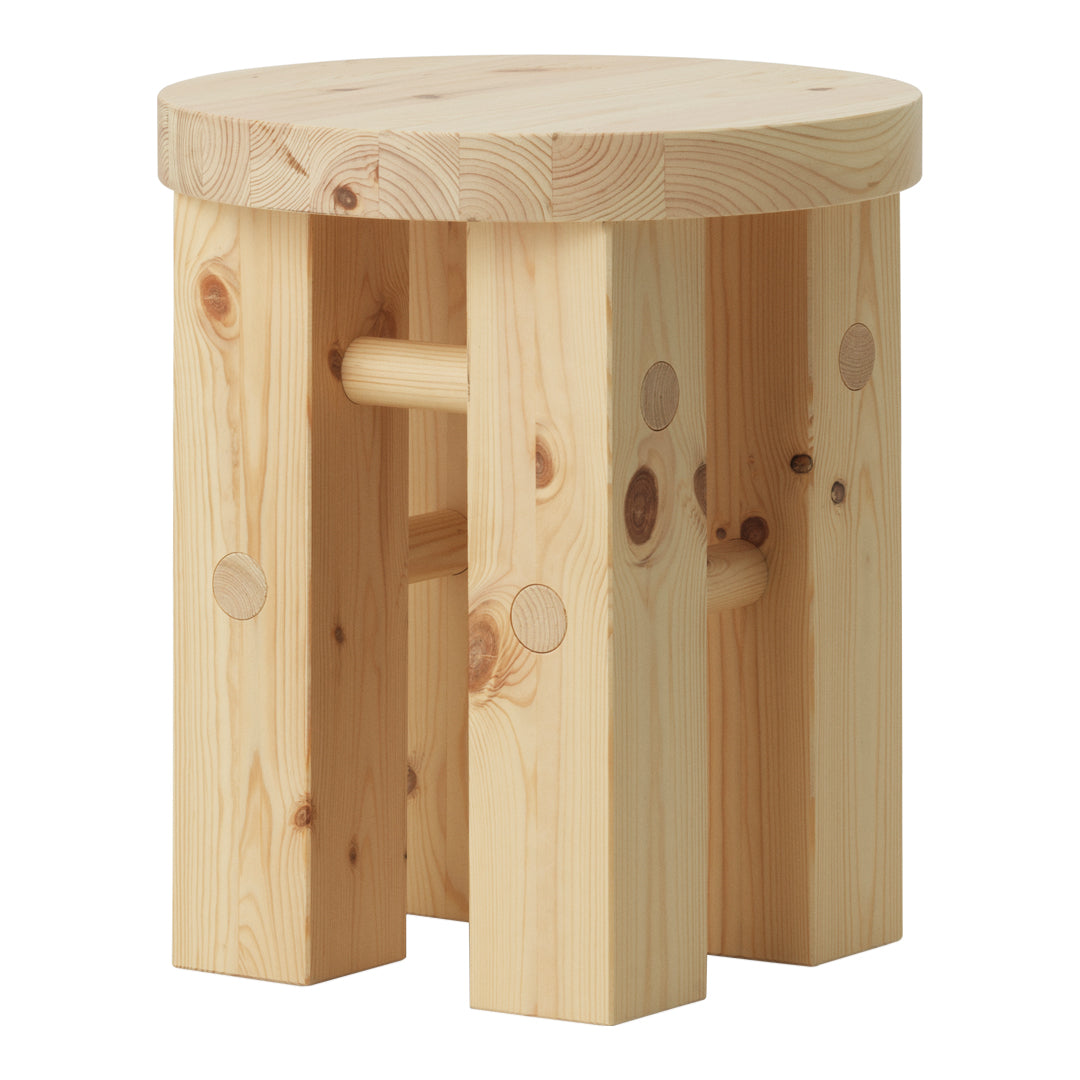 Pine is a decorative and versatile stool. The stool can be used as extra seating, as a side table for a lamp, as a pedestal for a vase or as a bedside table. Pine is named after its construction, which consists of 100% solid pine wood.